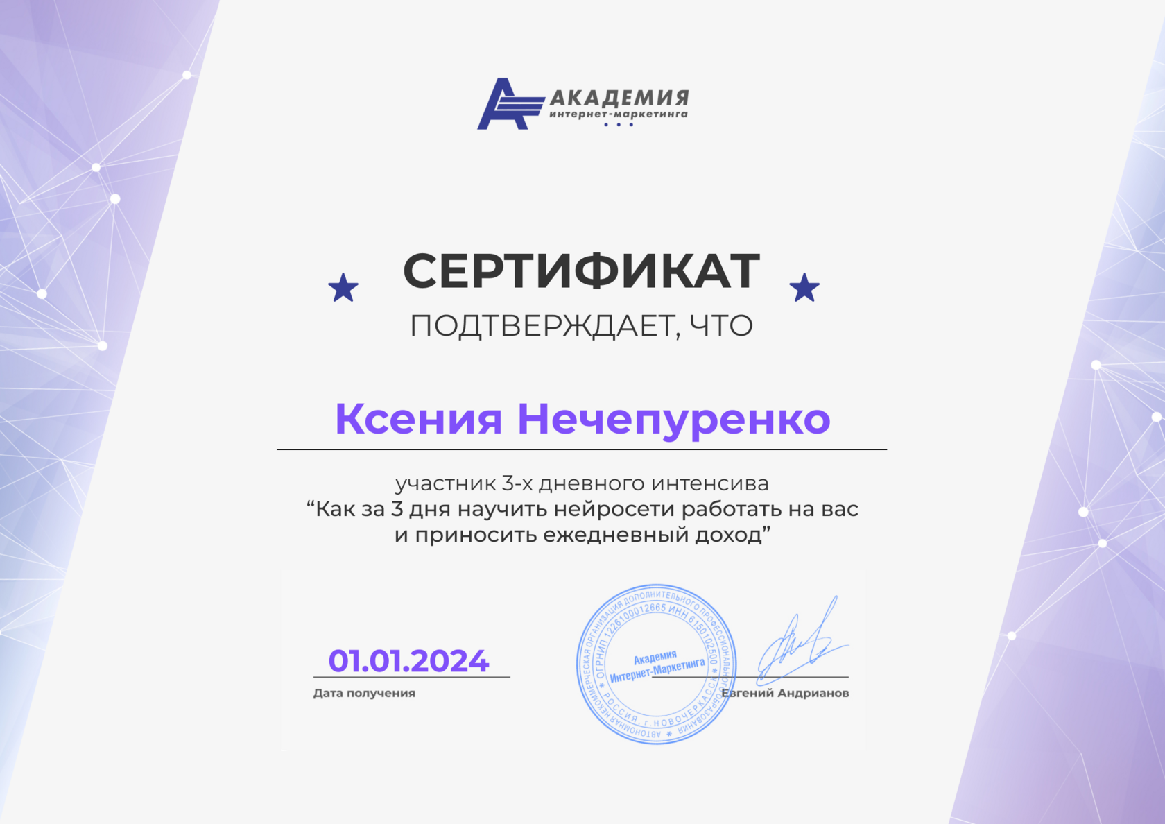ПЕРСОНАЛЬНАЯ ДИАГНОСТИКА по получению первого дохода на нейросетях*